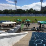 We had a great evening, all together. This was our time, but I’ll share one important moment with you. The former captain of Ukraine men’s team, Valeriy Maksyuk, came to find us at the hotel after the reception. Somehow, he felt a connection with our team, and he wanted to congratulate us for a great weekend. We did surprise a lot of people. He wanted to give us a Ukrainian jersey, his jersey from back when he was playing 7s for Ukraine. Our captain Karoline chose to offer it to Gina, who she thought was the best player in the team this weekend.